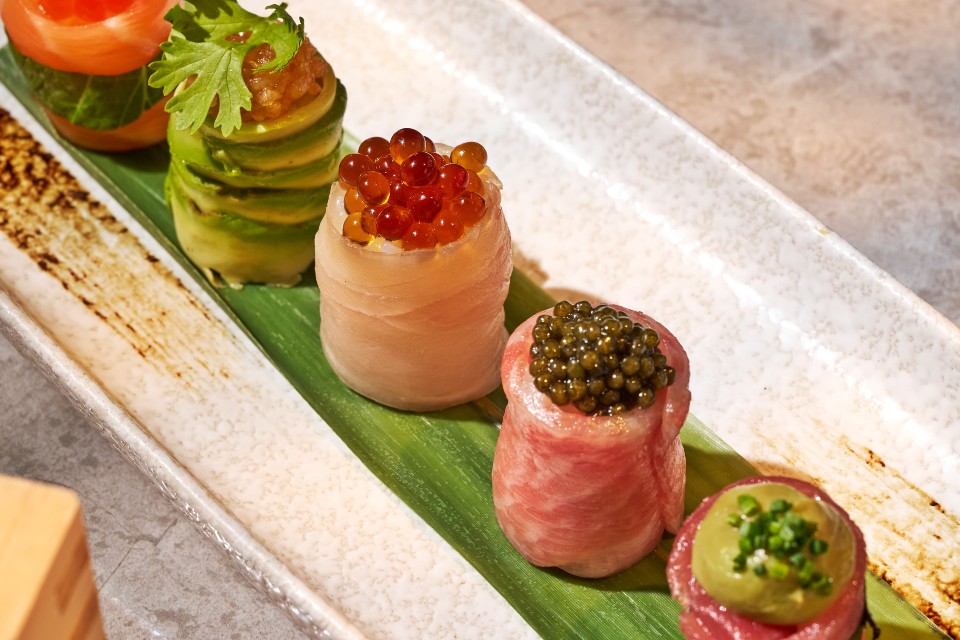 The brunch begins with three delicate courses highlighting CÉ LA VI's Modern Asian signature. Starters include Pan Seared Hokkaido Scallops with nduja beurre blanc, citrussy yuzu and shrimp oil, as well as an artfully curated selection of Assorted Nigiri with Otoro, Hamachi, Akami, Salmon and Avocado.
