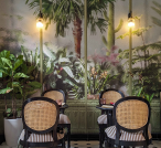 Set in a shophouse, Kunthaville offers both indoor and outdoor patio dining. The interiors recreate the nostalgia of a plantation house, with elements such as a beautiful mural painted across one wall by a French artist, depicting a frosted view of the greenery outside as seen from inside a plantation bungalow. The 3D painting is just one of the many elements which set the tone for the room, with batik paintings and traditional masks adorning the walls, and a centrepiece tea bar right in the middle.