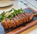 Sophia's handcrafted pastas celebrate Italian culinary artistry. Tagliatelle Atavi e Porcini, created with hickory-smoked Atavi pasta imported directly from Italy, is flavoured with porcini and veal jus. The Pappardelle al Ragù is equally outstanding, with hand-cut Wagyu beef slow-simmered into a creamy ragu that delicately coats each ribbon of pasta.